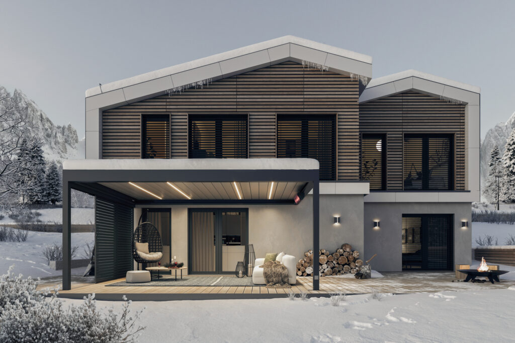 Auch bei Schnee oder starkem Wind sind unsere Lamellendächer zuverlässig und sicher.